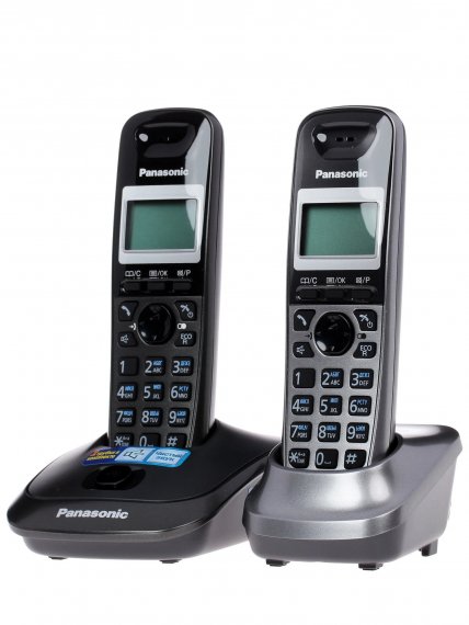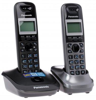 Panasonic KX-TG 2512RU2 – беспроводной телефон, в комплект поставки которого включены две трубки и две базы для них. Функционирование трубок осуществляется от двух аккумуляторов типа ААА. Время работы устройства в режиме разговора составляет 18 ч, после чего оно нуждается в подзарядке на базе. Не обошелся аппарат и без телефонной книги, которая рассчитана на запоминание пятидесяти номеров. Также имеется память, рассчитанная на пять последних набранных номеров. Прибор оборудован опцией начала разговора нажатием любой кнопки. При желании устройство можно закрепить на стене – для этого имеются специальные фиксаторы.