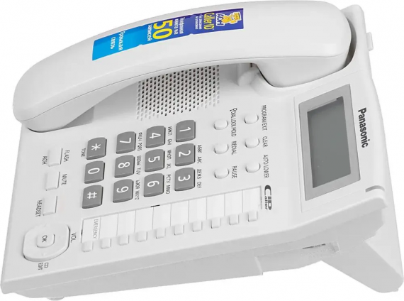 Белый проводной телефон PANASONIC KX-TS2388RUW – одна из самых востребованных офисных моделей, которой удобно пользоваться, например, в колл-центрах. В первую очередь в пользу аппарата говорят надежность и долговечность техники, которые уже стали традиционными для данного бренда. Не мене важна и эргономика корпуса. Пользователь может регулировать угол наклона. Кнопки – большие, расположены блоками и с крупной маркировкой. Проводной телефон PANASONIC KX-TS2388RUW предусматривает возможность подключения внешней гарнитуры. В памяти модели сохраняется до 50 записей. Также можно установить 20 номеров на набор "горячими" клавишами. Громкость динамика и звонка регулируется, возможно полностью отключить звуковой сигнал входящих звонков и ориентироваться в этом случае по светодиодному индикатору и информационному сообщению на дисплее.