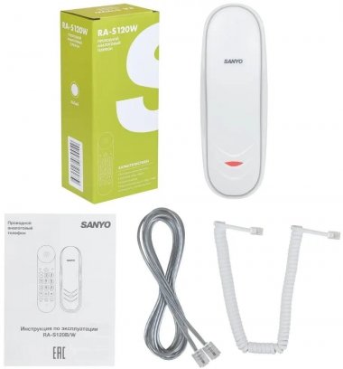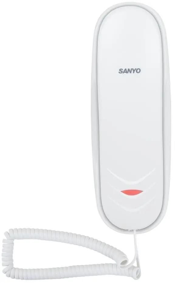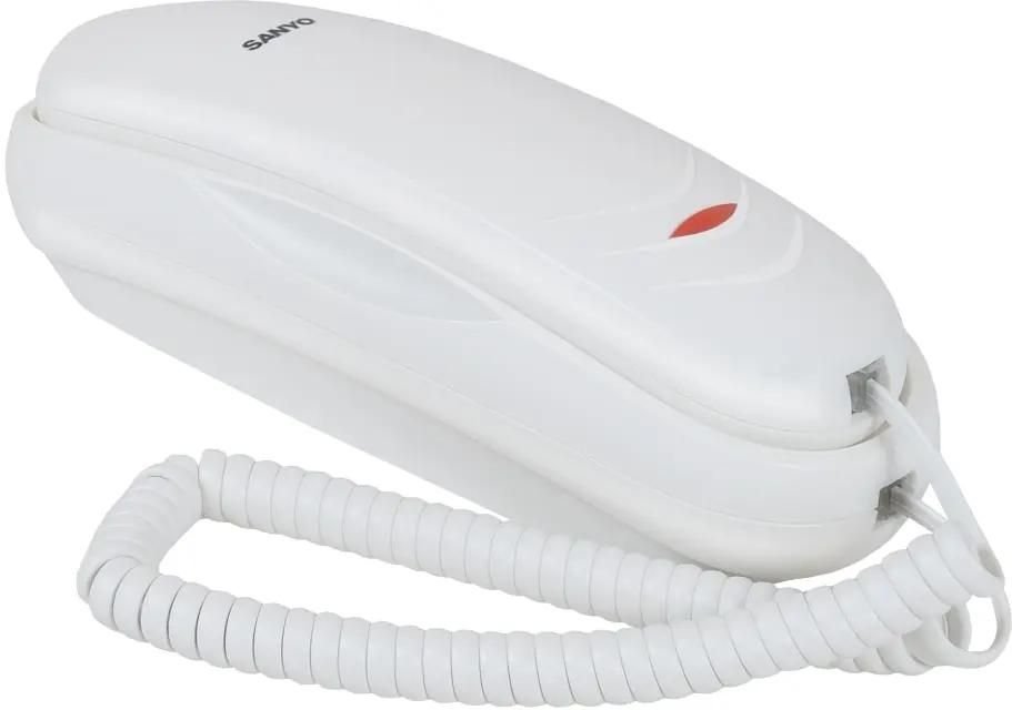 Стационарный телефонный аппарат Sanyo RA-S120W - компактный проводной телефон белого цвета, выполненный в прочном корпусе с номеронабирателем на трубке. Подключается к двухпроводной аналоговой линии. Питание от линии. Не требует программирования. Может использоваться, как гостиничный телефон.