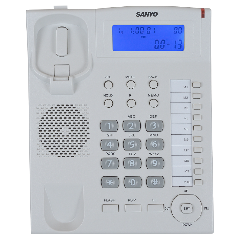 Стационарный телефонный аппарат Sanyo RA-S517W это офисный вариант телефона с максимальным набором функций. Большой ЖК-дисплей и отличный спикерфон, а также программируемые клавиши быстрого набора. Цвет - белый. Подключается к двухпроводной аналоговой линии. Питание от линии. Не требует программирования.