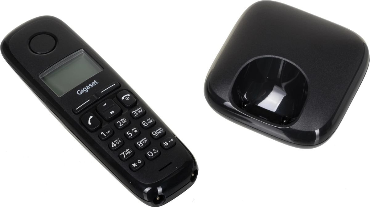 Gigaset A170 SYS RUS - бюджетный беспроводной телефон стандарта DECT черного цвета, обладающий необходимым набором базовых функций и выполненный с немецким качеством, компактное и функциональное решение для использования как в квартире или доме, так и в небольшом офисе.